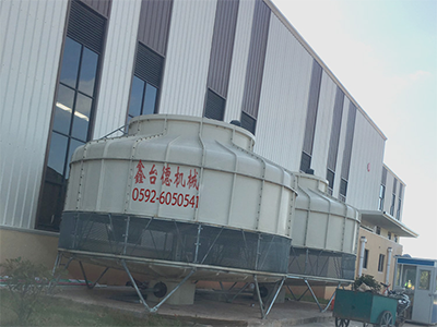 冷却塔是利用空气与水的接触来冷却水,以水为循环冷却剂,从塔内吸收热量并排放至大气中,从而降低塔内空气温度制造冷却水,循环使用。本款圆形冷却塔采用循环冷却系统,快速散热,降低水温,精心设计,冷却运作音量更低,塔体采用流线型设计,风阻更小,散热更快。